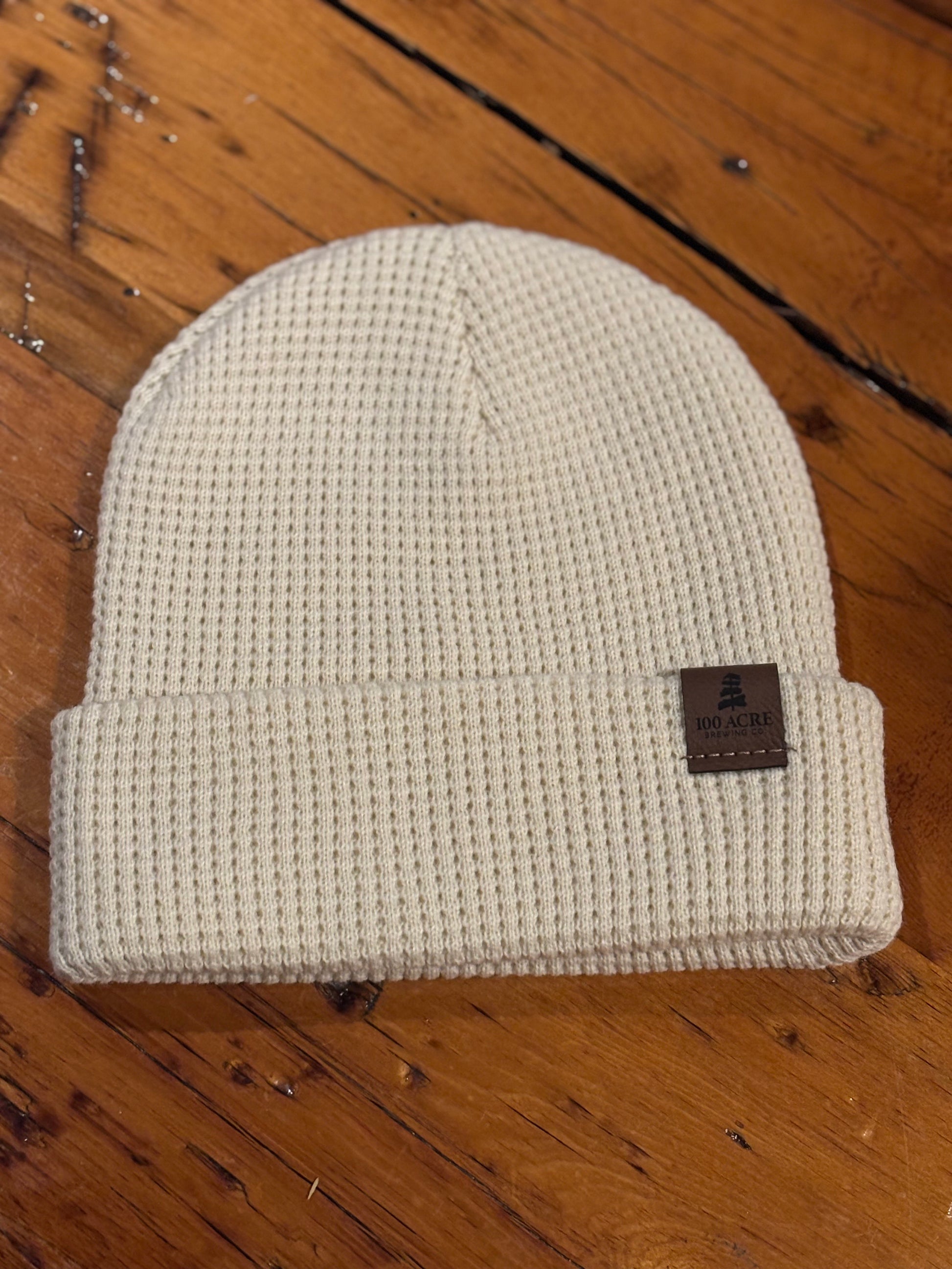 Waffle knit toque, 100% acrylic. Available in caramel, black or ivory.